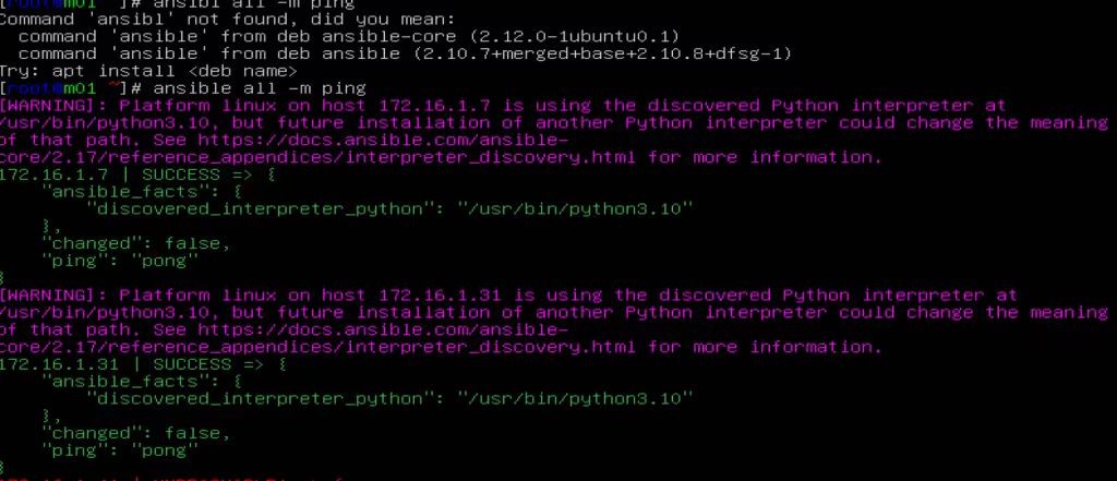 ansible -m all ping